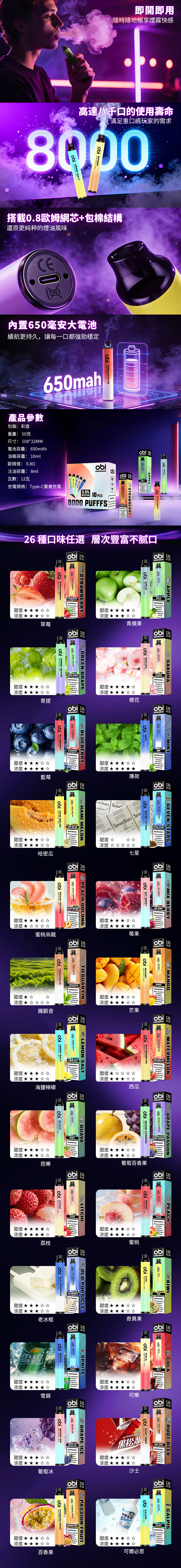 🔥 Obi 8000口一次性 正式登場!主打高續航與穩定輸出,開封即用,外型簡約時尚,顏值與實用度兼具。